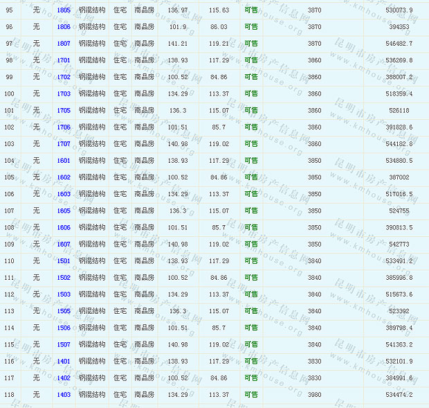 春城慧谷(A2地塊)3、15幢準(zhǔn)售房源及房價(jià)