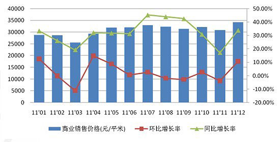 從商業(yè)價(jià)格指數(shù)來看,除2011年前幾個(gè)月稍有松動(dòng)外,全年價(jià)格在大量新增商業(yè)入市的格局之下,保持了一個(gè)穩(wěn)中有升的發(fā)展態(tài)勢(shì)。