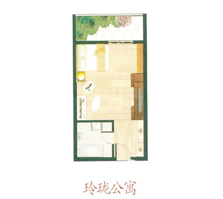 玲瓏公寓,建筑面積40㎡,一室一廳一衛(wèi)一陽臺,戶型敞開無隔斷,靈活經(jīng)湊,功能性強(qiáng)利用率高。