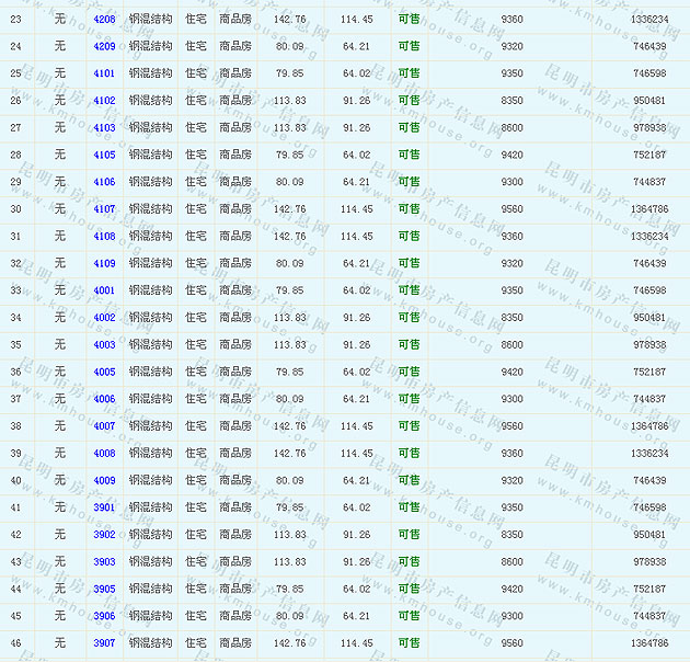 根據(jù)云南省物價局關(guān)于發(fā)布《云南省商品房銷售明碼標(biāo)價實施細(xì)則(試行)》的通知,現(xiàn)將該項目商品住房的準(zhǔn)售房源及每套房屋價格向社會公布,房地產(chǎn)開發(fā)企業(yè)應(yīng)嚴(yán)格按照公布價格,商品房銷售明碼標(biāo)價實行一套一標(biāo)。商品房經(jīng)營者應(yīng)當(dāng)對每套商品房按照建筑面具進行明碼標(biāo)價,否則,房產(chǎn)登記機關(guān)不予登記備案。準(zhǔn)售房源及房價信息如下: