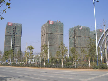 踩盤組從護(hù)國路出發(fā),先乘5路公交到東站然后到東站公交車場換乘188路,經(jīng)過40多分鐘的顛顛簸簸,終于抵達(dá)了東信中心城的項(xiàng)目現(xiàn)場。