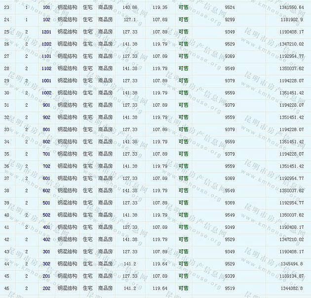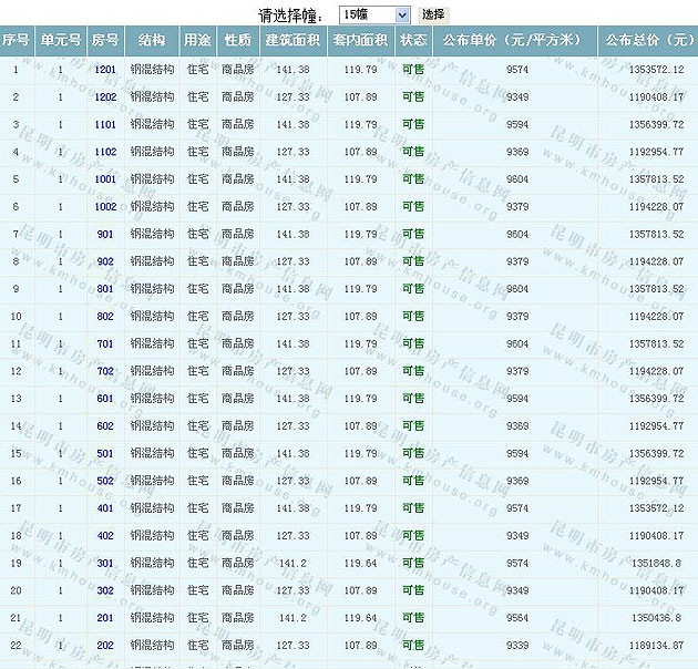 中天融域13-19幢準(zhǔn)售房源及房價(jià)