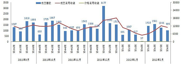 昆明住宅市場(chǎng)周度成交量?jī)r(jià)走勢(shì)