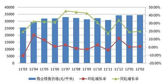 圖6-2:2011年3月-2012年2月昆明商業(yè)銷售價格走勢圖(數(shù)據(jù)來源:至祥研究中心)