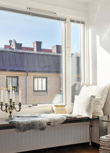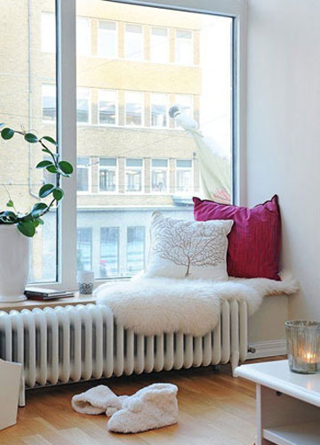 飄窗不僅擁有一流的通風(fēng)采光,它的視野同樣一流。何不把它改造成一個小小的閱讀角。只需準備一塊蓋毯,幾只軟軟的團墊,你就可以看書發(fā)呆,或是和朋友一起談天說地。