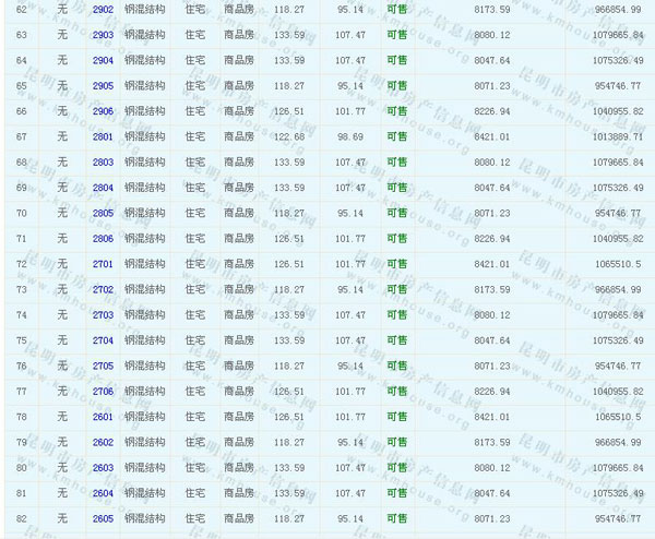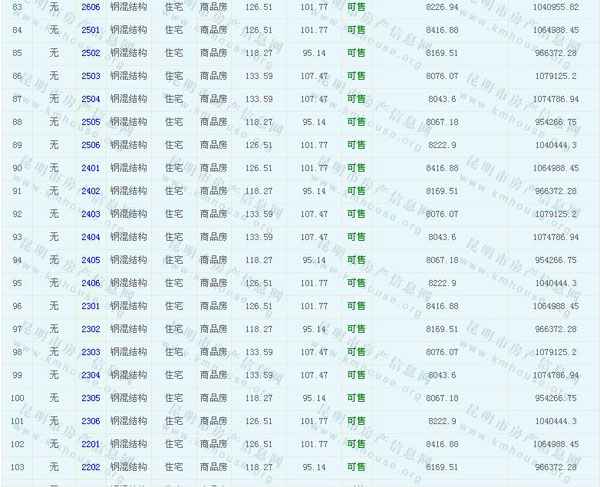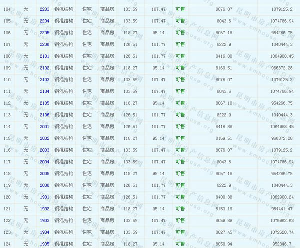 海倫國際(春城時光花園)準售房源及房價