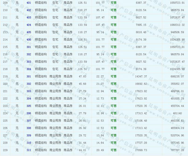 海倫國際(春城時光花園)準(zhǔn)售房源及房價