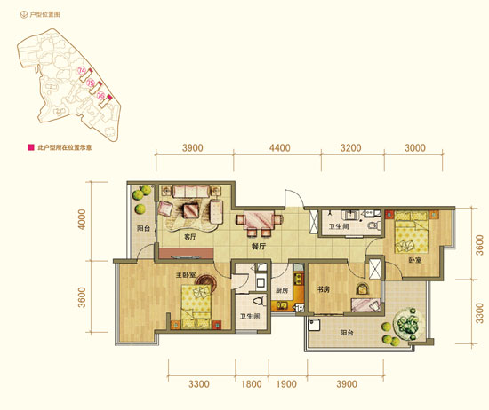 此戶型的優(yōu)點(diǎn)在于有兩個(gè)足夠大的生活陽臺供業(yè)主使用,養(yǎng)花、晾曬衣物的地方是分開的,且主臥與次臥集中在客廳的旁的平面內(nèi),書房、主臥與次臥也都有各自的飄窗,舒適度得到提升。
