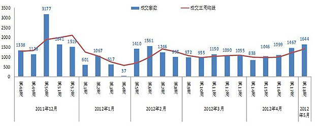 昆明住宅市場(chǎng)周度成交量?jī)r(jià)走勢(shì)
