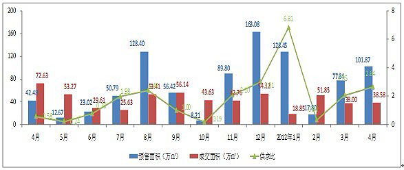 圖5-3:2012年4月房地產(chǎn)供求比變化(數(shù)據(jù)來源昆明市房產(chǎn)信息網(wǎng),至祥研究中心整理)