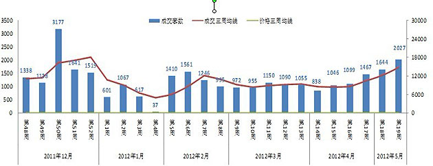 昆明住宅市場(chǎng)周度成交量?jī)r(jià)走勢(shì)