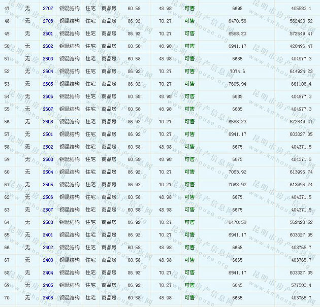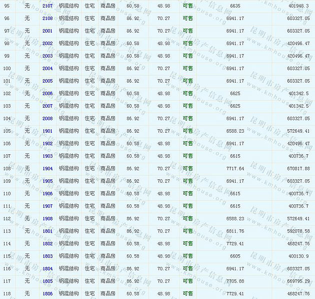耀興楓丹白露的準(zhǔn)售房源及房價公示