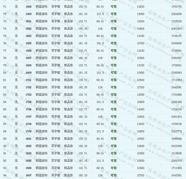 潤城1棟寫字樓車位準(zhǔn)售房源及房價公示