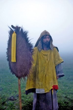 他隨后就跟我們下山來,一起到政府遞材料反映情況,到華能集團(tuán)大理分公司的辦公室走訪,他每到一處,寥寥數(shù)語,就在辦公室里打起坐來,靜如雕塑。他常年不洗澡,長發(fā)披肩,胡須凌亂,身上味道很重,不修邊幅,禪定工夫很深,常有驚人之語。