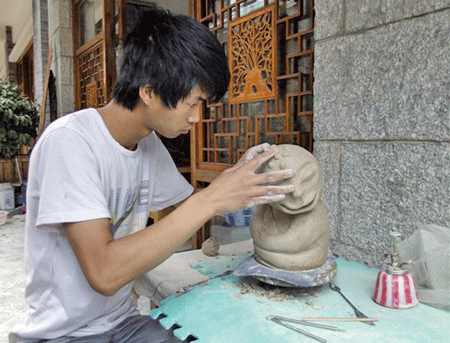 “人天生愛泥,我特愛陶。自己尋找泥土,自己做釉色,自己做陶后燒制,做出大理特有陶藝作品,在我看來那是一種幸福。當(dāng)我們觸摸泥巴的時候,有一種回歸自然的親切感覺。無論多么偉大的人,他們都來自泥土,最終都要回歸于泥土。泥土純潔,和人一樣,我們必須尊敬它,像尊敬我們自己一樣,有一天我們也將融入其中,以泥土的形式而存在。要說瓷代表君子的話,那陶就是蕓蕓眾生了。泥隨處可得,形隨性而生;不同的泥有不同的燒制效果,在窯爐中得到升華,普通而充滿神秘,期待中伴隨著悲喜。指紋及裂紋在陶上留下的痕跡是作者特有的,獨一無二的。最終形成:我即是陶,陶即是我的境界。”