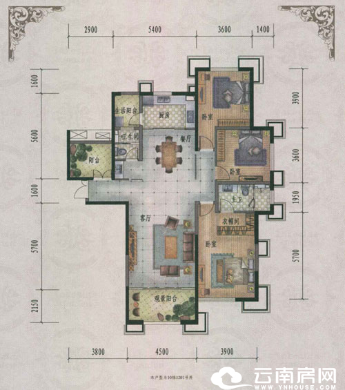 162平米的J戶型分布在10棟的01、03號(hào)房,東南向,三室兩廳兩衛(wèi)設(shè)計(jì),均為端頭房。從戶型圖上看,此戶型給人的感覺雖然不是很方正,但室內(nèi)布局很合理,既有動(dòng)靜區(qū)分名明顯的優(yōu)點(diǎn)有兼具明廚明衛(wèi)設(shè)計(jì)的優(yōu)點(diǎn),是個(gè)不錯(cuò)的戶型。