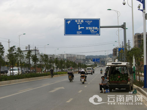一路走來,我最大的感觸便是路網(wǎng)發(fā)達(dá)且通暢。首先從人民東路(延長線)直行后的第一個轉(zhuǎn)彎處說起。我們左轉(zhuǎn)上寺瓦路后,首先映入眼簾的是雙向六車道的寺瓦路以及一些新舊程度各異的居民小區(qū),沿途還有各種小吃店,4S維修點(diǎn)之類的地方,給人第一的感覺就是有人氣,沒有想象中那么荒涼(PS:之前到過呈貢新區(qū),因此去白沙潤園之前小編已經(jīng)做好了沿途只見樹木不見人的心理準(zhǔn)備)。沿著寺瓦路前行至寺瓦路與東三環(huán)交匯處時,金色交響小區(qū)就在眼前。曾經(jīng)那么遙遠(yuǎn)的金色交響就在眼前這是多么不可思議的事情啊,這也難怪金色交響的二手房一下從2010年初的6000元/平米飆升到現(xiàn)在的8000元/平米了,路(寺瓦路)通了房子自然就升值了。