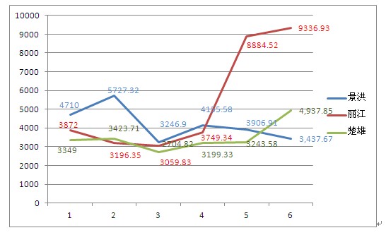 由以上信息我們可以看出,2012年上半年內(nèi),三個(gè)州市的樓市狀況差異很大。從成交總套數(shù)和成交總面積來看,麗江僅為景洪的三分之一左右。而從成交均價(jià)來看,成交量最少的麗江比成交量名列第二的楚雄足足多出了1872.996元/㎡。為什么會(huì)出現(xiàn)這兩類情況?下面,我們來進(jìn)行詳細(xì)分析。