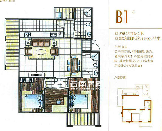 三居室戶型有三個,分別為87.49㎡的C3/B3戶型、106.75㎡的B1-1戶型、116.01㎡的B1戶型。這些戶型空間利用均比較緊湊,B1-1和B1戶型還擁有兩個大景觀陽臺和1個生活西曬陽臺。