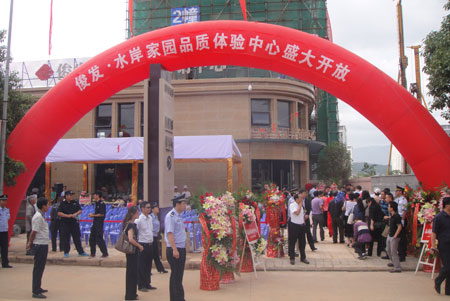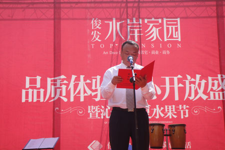 上午10:30,俊發(fā)·水岸家園品質(zhì)體驗(yàn)中心開(kāi)放儀式正式開(kāi)始。富民縣畢副縣長(zhǎng)首先代表縣政府做指示性發(fā)言:“當(dāng)前富民正處于農(nóng)業(yè)提升、工業(yè)發(fā)展、城鎮(zhèn)建設(shè)、市場(chǎng)開(kāi)拓的轉(zhuǎn)折期,面臨著諸多加快發(fā)展的機(jī)遇,富民縣被市委市政府確定為昆明一主四鋪的北部新城——富民新區(qū),承接主城產(chǎn)業(yè)轉(zhuǎn)移和人口分流,全面融入現(xiàn)代新昆明發(fā)展的范圍。隨著京昆高速昆明段及武昆高速公路等交通路網(wǎng)的建成,富民縣將迎來(lái)了新一輪加快發(fā)展的歷史機(jī)遇;富民正在不斷提高城市品質(zhì),打造昆明近郊最理想的山水田園衛(wèi)生城,宜人宜居新富民!彼都覉@作為富民縣首個(gè)高端城市綜合體項(xiàng)目,承載著富民人對(duì)未來(lái)高端生活的期待和畢副縣長(zhǎng)的殷切厚望:“俊發(fā)·水岸家園的建設(shè),標(biāo)志著富民城市化進(jìn)程正式進(jìn)入到一個(gè)新的階段,水岸家園將是富民縣第一個(gè)平行于省會(huì)城市、頂尖標(biāo)準(zhǔn)的現(xiàn)代高端城市綜合體,將為富民高尚人居樹(shù)立典范。我們對(duì)全國(guó)百?gòu)?qiáng)、云南龍頭的俊發(fā)地產(chǎn)同知名企業(yè)萬(wàn)通集團(tuán)的合作寄予了厚望,希望企業(yè)在高起點(diǎn)定位、高標(biāo)準(zhǔn)設(shè)計(jì)的基礎(chǔ)上,狠抓工程質(zhì)量、工程進(jìn)度,為我們呈現(xiàn)一個(gè)代表富民形象、高端品質(zhì)的富民縣高端城市綜合體。富民人民真誠(chéng)的要求各界人士、各方朋友選擇俊發(fā)、選擇富民。”