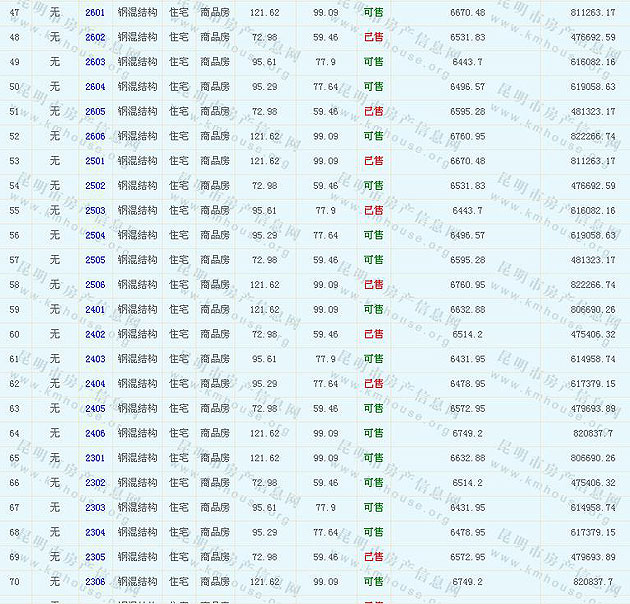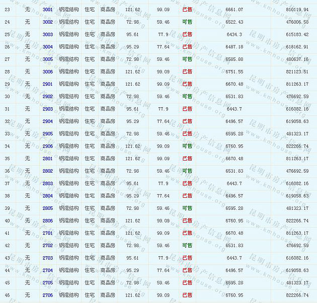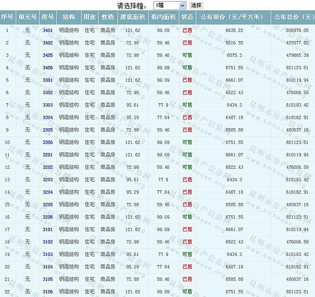 根據(jù)云南省物價(jià)局關(guān)于發(fā)布《云南省商品房銷售明碼標(biāo)價(jià)實(shí)施細(xì)則(試行)》的通知,現(xiàn)將該項(xiàng)目商品住房的準(zhǔn)售房源及每套房屋價(jià)格向社會(huì)公布,房地產(chǎn)開發(fā)企業(yè)應(yīng)嚴(yán)格按照公布價(jià)格,商品房銷售明碼標(biāo)價(jià)實(shí)行一套一標(biāo)。商品房經(jīng)營者應(yīng)當(dāng)對(duì)每套商品房按照建筑面具進(jìn)行明碼標(biāo)價(jià),否則,房產(chǎn)登記機(jī)關(guān)不予登記備案。準(zhǔn)售房源及房價(jià)信息如下:
