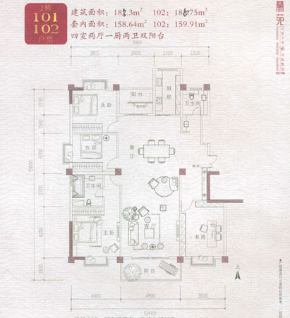 根據(jù)置業(yè)顧問提供的樓書顯示,第二棟板式樓房的戶型就此一種。有所區(qū)別的是1號房建筑面積為185.3㎡,2號房為186.75㎡,公攤面積約27㎡。整體來看,該戶型為全明設(shè)計(jì),所有房間、衛(wèi)生間均有窗戶;且戶型方正,動靜功能區(qū)分較為明顯。值得注意的是,該戶型的四個房間均帶有飄窗,既有利于采光,更有利于拓展室內(nèi)空間。