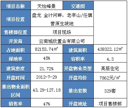 天怡峰景開盤分析:均價(jià)7862元 銷售率47%