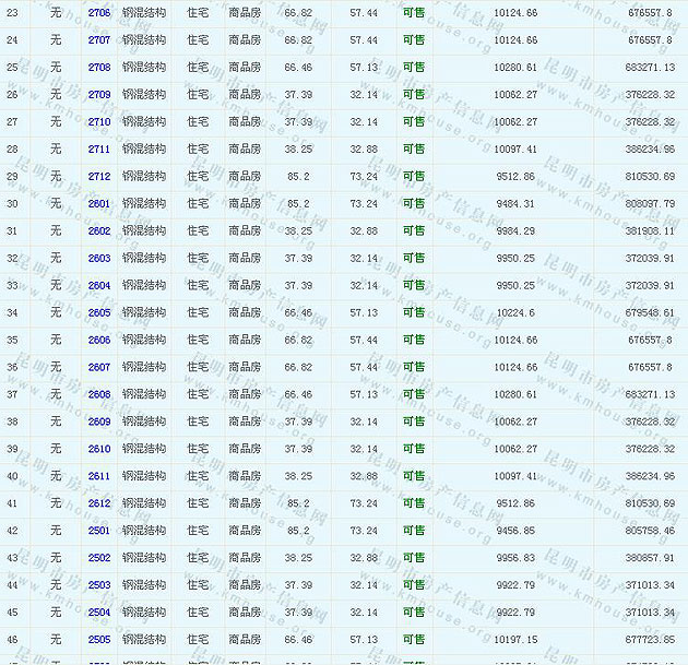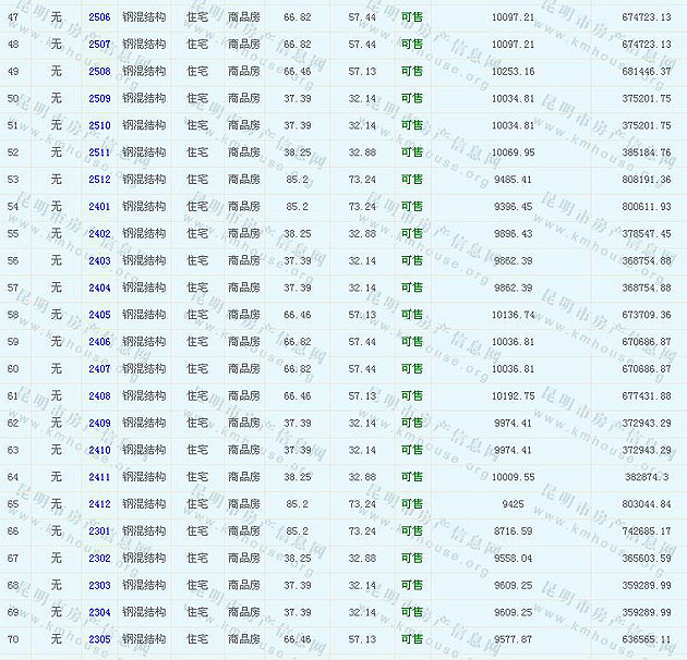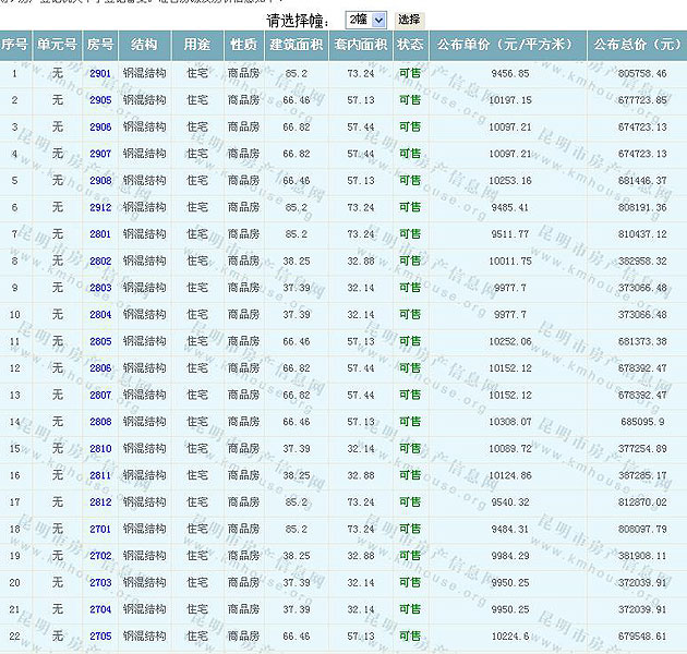 同德昆明廣場上北區(qū)準(zhǔn)售房源及房價公示