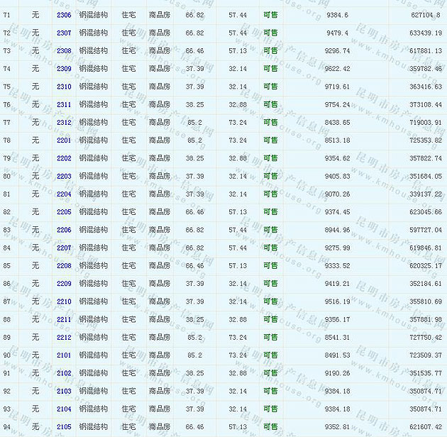 同德昆明廣場(chǎng)上北區(qū)準(zhǔn)售房源及房價(jià)公示