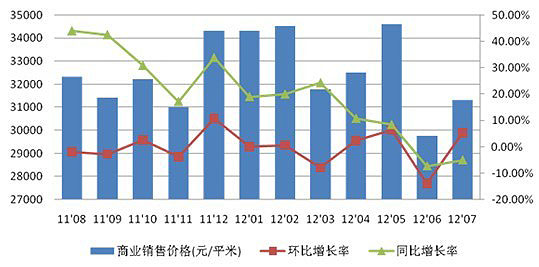 表3-1:2012年7月不同商業(yè)業(yè)態(tài)租售均價(jià)(數(shù)據(jù)來源:至祥研究中心)
