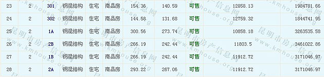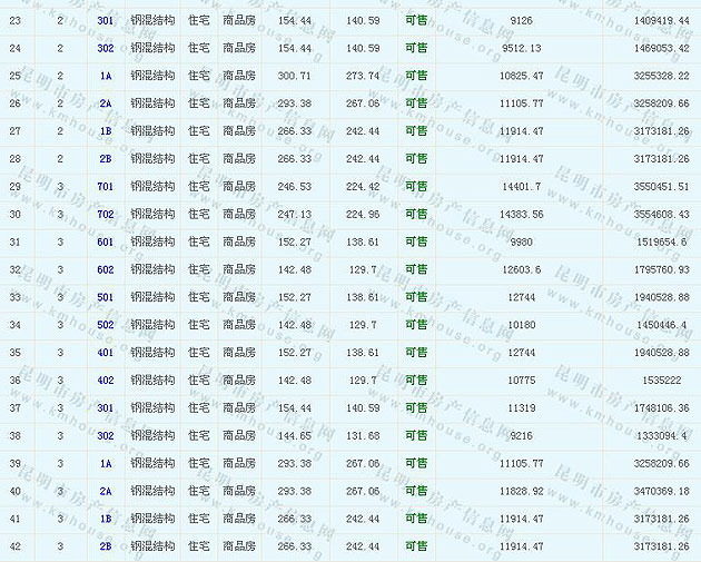 滇池湖岸花園一期住宅(公園1903)準(zhǔn)售房源及房價