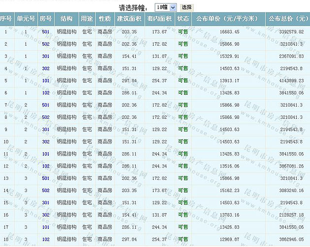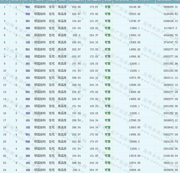 滇池湖岸花園一期住宅(公園1903)準售房源及房價