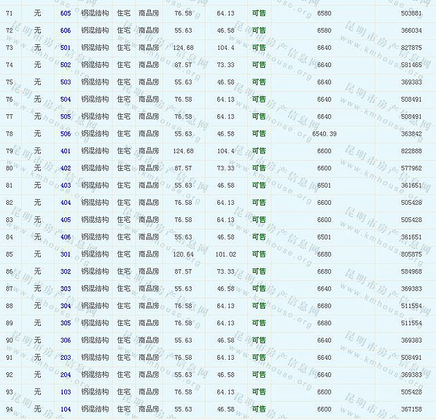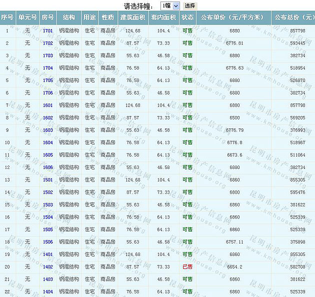 根據(jù)云南省物價(jià)局關(guān)于發(fā)布《云南省商品房銷售明碼標(biāo)價(jià)實(shí)施細(xì)則(試行)》的通知,現(xiàn)將該項(xiàng)目商品住房的準(zhǔn)售房源及每套房屋價(jià)格向社會(huì)公布,房地產(chǎn)開(kāi)發(fā)企業(yè)應(yīng)嚴(yán)格按照公布價(jià)格,商品房銷售明碼標(biāo)價(jià)實(shí)行一套一標(biāo)。商品房經(jīng)營(yíng)者應(yīng)當(dāng)對(duì)每套商品房按照建筑面具進(jìn)行明碼標(biāo)價(jià),否則,房產(chǎn)登記機(jī)關(guān)不予登記備案。準(zhǔn)售房源及房?jī)r(jià)信息如下: