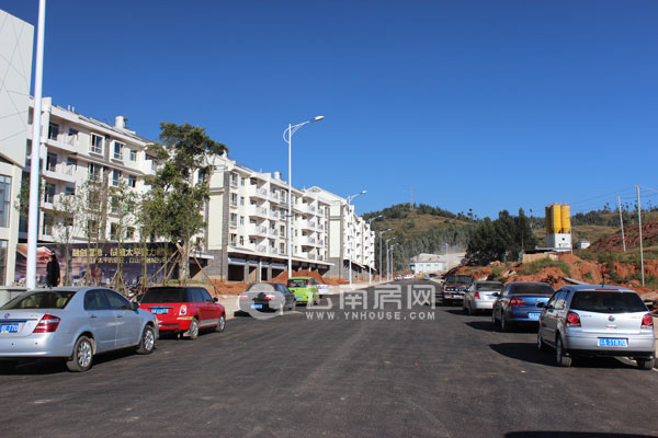 山水融城項(xiàng)目門前安靜寬敞的道路