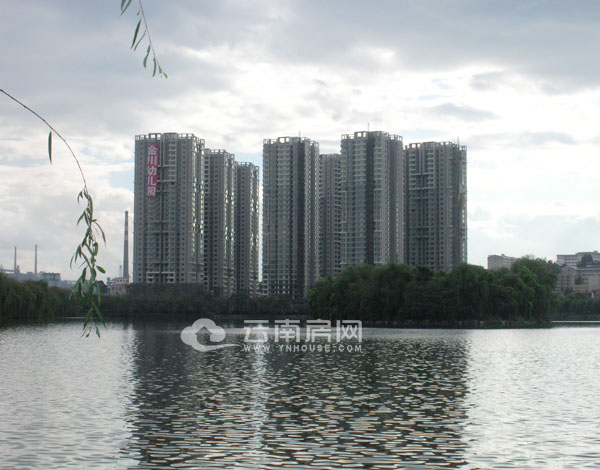 東湖·第一城邊隱約可見昆鋼生廠區(qū)煙囪