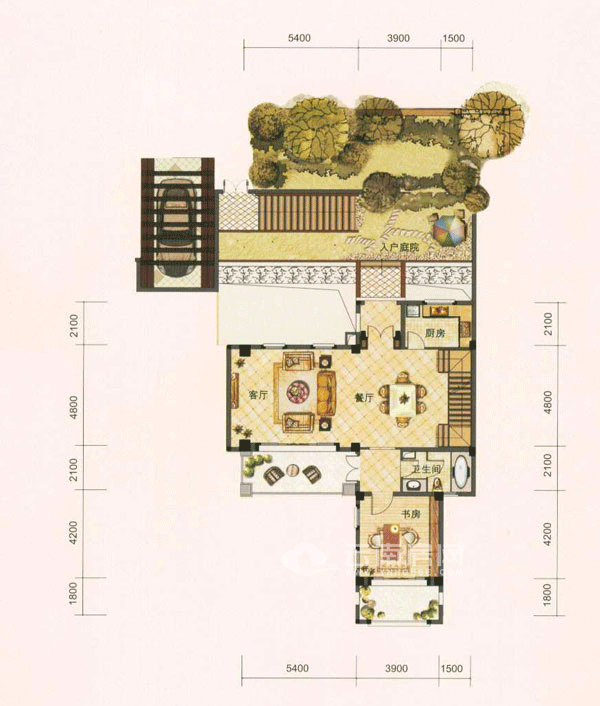 戶型點評:院墅S1-a約281平米共分為三層,設計為四室四廳三衛(wèi),其中一層面積約一百平米的前庭后院設計,觀景效果更好。家庭活動空間更廣闊,吧臺為娛樂增添了許多樂趣。二層入戶,帶六十余平米的入戶庭院,讓人到家門口就覺得舒適,室內大尺度廳房開間,客餐廳橫廳設計,十六平米左右書房配有推窗見景的大面寬玻璃,讓別墅辦公更輕松。三層主臥豪華全套房設計,十一平米左右的奢侈衛(wèi)浴,還為主臥專門設計了十一平米左右的私密陽臺,與樓下動靜分明,讓疲倦一天的心情有個安靜的休息空間。此外,值得一提的是,上下雙重花園及室外車位均為贈送的,雖然僅為281平米的戶型卻擁有近五百平米的使用空間。