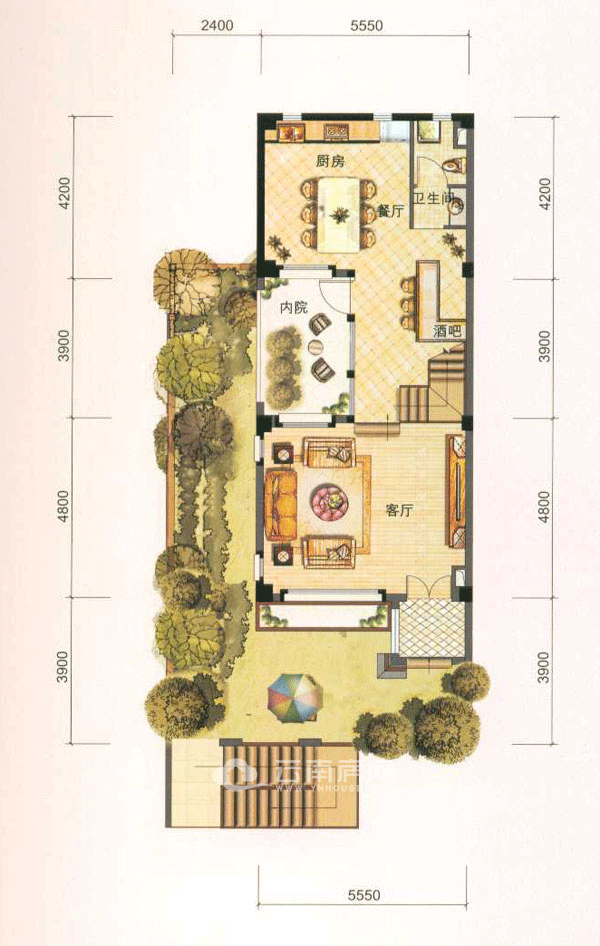 戶型點(diǎn)評:坡墅T1-a約187平米,共四層,設(shè)計(jì)為三室兩廳四衛(wèi),上下內(nèi)外四重花園設(shè)計(jì),其中,一層為約50平米的寬闊的車庫及花園;二層為活動(dòng)待客區(qū),設(shè)計(jì)有客廳、廚房及吧臺,令人驚喜的是,二層除了大面積的戶外花園外,還有一個(gè)休閑內(nèi)庭院,足不出戶即可享受自然所帶來的寧靜;三層為次臥,次臥均帶有衛(wèi)生間,其中一個(gè)次臥連接約23平米的后院,別有一番情致;四層為主臥,全套房設(shè)計(jì),且有寬闊露臺,可自在觀景。