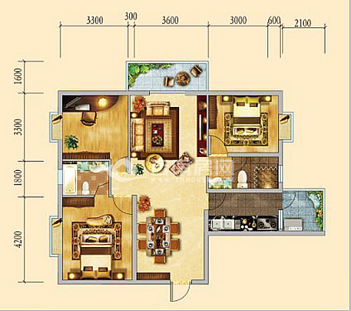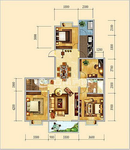 A-3戶型為3房2廳1廚2衛(wèi),121.1平米,此戶型為明廚設(shè)計,廚房帶生活陽臺;三間臥室都帶有飄窗,采光通風(fēng)有保證;客廳、三間臥室及餐廳格局方正;美中不足是兩間衛(wèi)生間均沒有主采觀光,且朝向客廳和餐廳的中心空間,通風(fēng)性能受限。