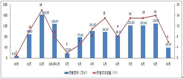 圖2-1:2012年10月房地產(chǎn)供應面積變化(數(shù)據(jù)來源昆明市房產(chǎn)信息網(wǎng),至祥研究中心整理)