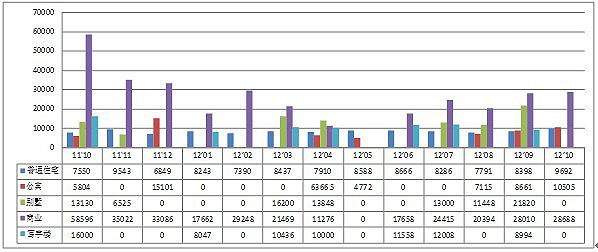 表2-6:2011年10月-2012年10月開盤項(xiàng)目銷售變化(數(shù)據(jù)來源至祥研究中心)