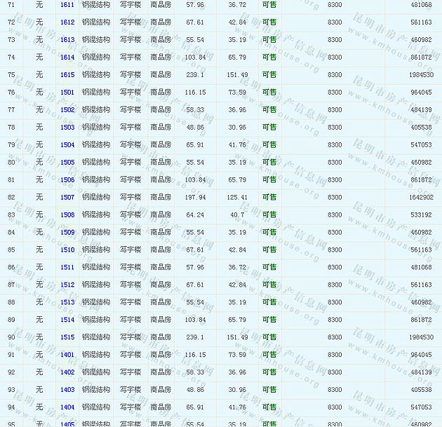 昆明鼎興都商務(wù)中心(大都)準售房源及房價公示