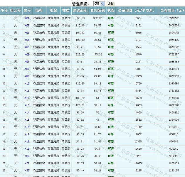 昆明鼎興都商務(wù)中心(大都)準(zhǔn)售房源及房價(jià)公示