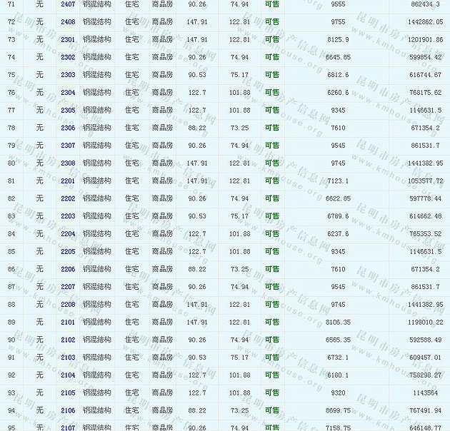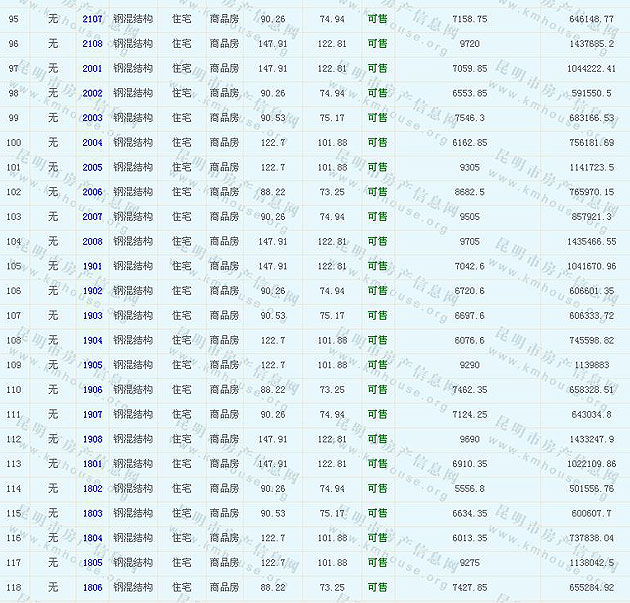 碧雞名城9棟10棟準(zhǔn)售房源及房?jī)r(jià)公示