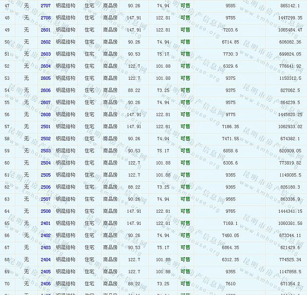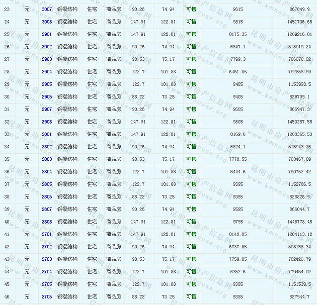 根據(jù)云南省物價(jià)局關(guān)于發(fā)布《云南省商品房銷售明碼標(biāo)價(jià)實(shí)施細(xì)則(試行)》的通知,現(xiàn)將該項(xiàng)目商品住房的準(zhǔn)售房源及每套房屋價(jià)格向社會(huì)公布,房地產(chǎn)開發(fā)企業(yè)應(yīng)嚴(yán)格按照公布價(jià)格,商品房銷售明碼標(biāo)價(jià)實(shí)行一套一標(biāo)。商品房經(jīng)營(yíng)者應(yīng)當(dāng)對(duì)每套商品房按照建筑面具進(jìn)行明碼標(biāo)價(jià),否則,房產(chǎn)登記機(jī)關(guān)不予登記備案。準(zhǔn)售房源及房?jī)r(jià)信息如下: